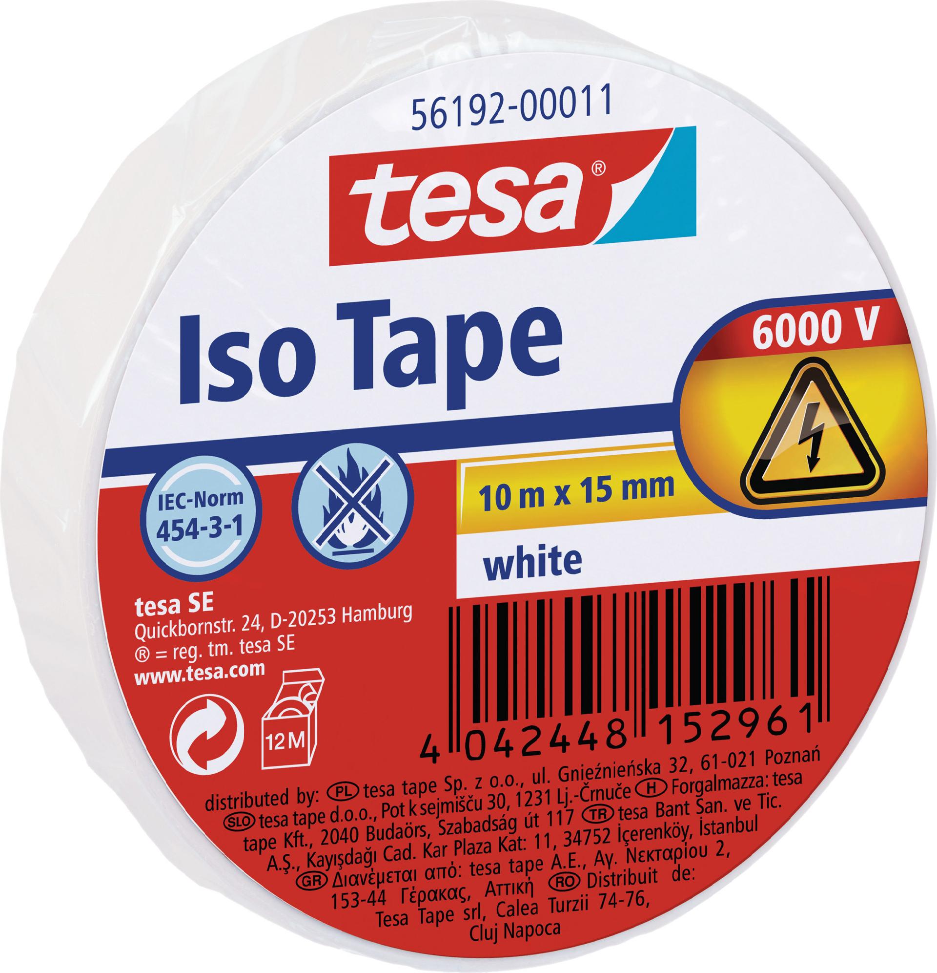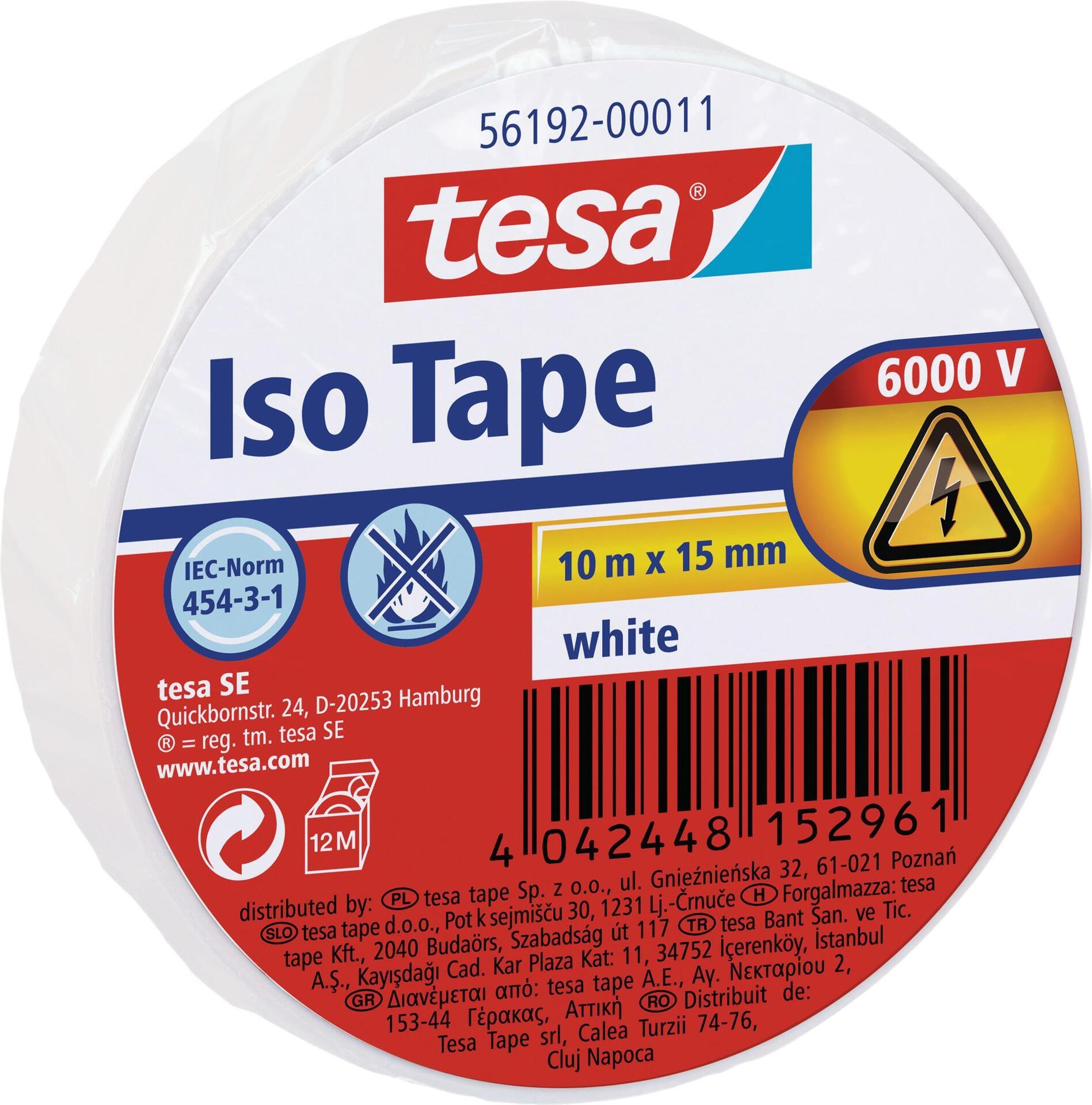 tesa Isolierband ISO TAPE, 15 mm x 10 m, weiß Klebeband zum Isolieren und Reparieren elektrischer Leitungen, sicherer Schutz vor Spannungen bis 6.000 Volt, schwer entflammbar (56192-00011-01 / 56192-11-01)