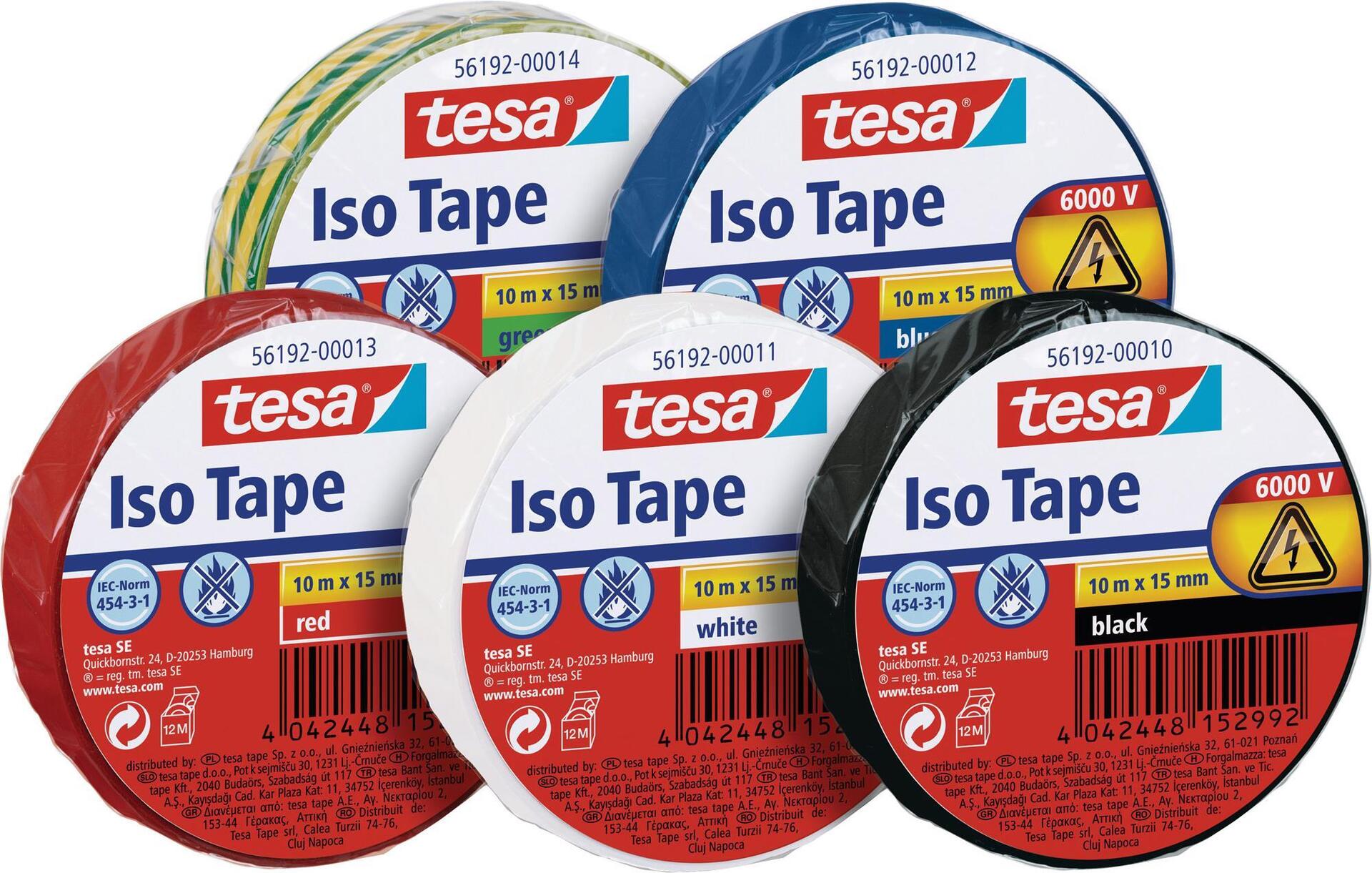 tesa Isolierband ISO TAPE, 15 mm x 10 m, grün / gelb Klebeband zum Isolieren und Reparieren elektrischer (56192-00014-01)