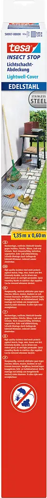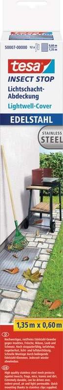 tesa Lichtschachtgitter Edelstahl, 1,35 m x 0,60 m rostfreies Gewebe, strapazierfähig, befahrbar, nagetierfest (50007-00000-00)