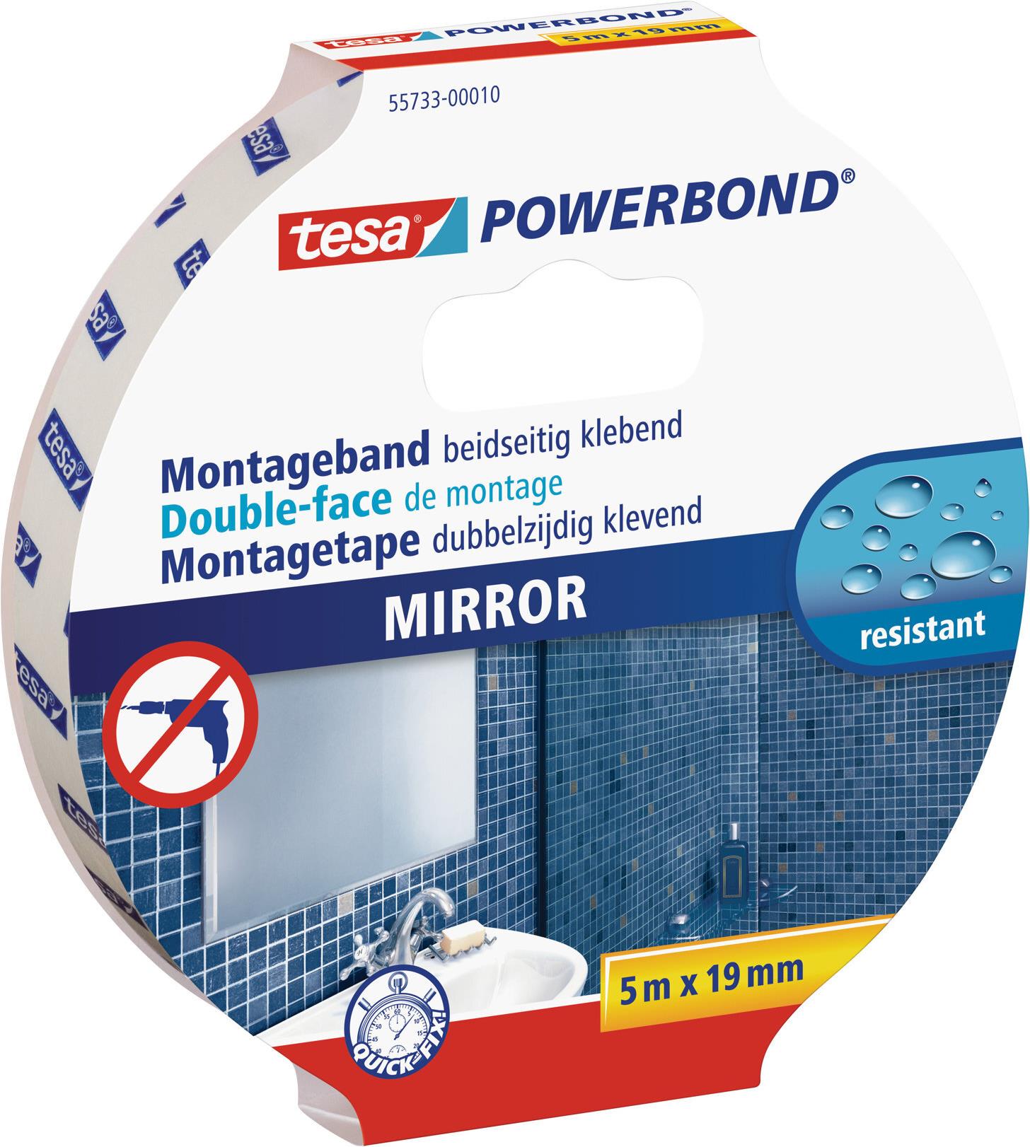 • tesa Montageband für Spiegel, 19 mm x 5,0 m doppelseitiges Klebeband, extra stark, hohe Feuchtigkeits- (55733-10-0)