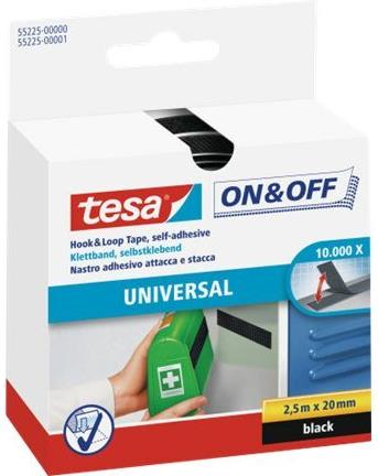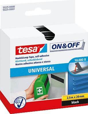 • tesa On & Off Klettband, 20 mm x 2,5 m, schwarz selbstklebend, schnelles fixieren und schnelles ablösen - 1 Stück (55225-00000-02)