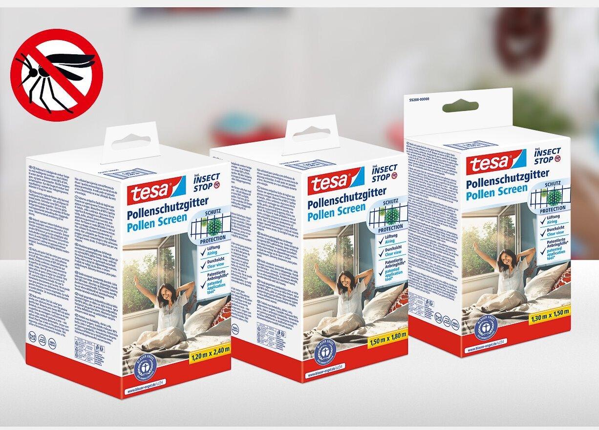tesa Pollenschutzgitter für Fenster, 1,80 m x 1,50 m wirksame Reduzierung von Pollen bei gleichzeitig spürbarer - 1 Stück (55296-00000-00)