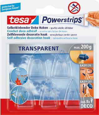tesa Powerstrips DECO-HAKEN, Haltekraft: max. 0,2 kg transparent, UV-beständig, Deco-Haken wieder verwendbar (58900-13-0)