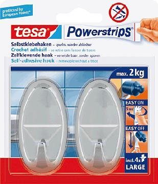tesa Powerstrips Haken LARGE, Oval, chrom aus hochwertigem Kunststoff, mehrfach verwendbar (58050-00012-00)