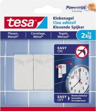 tesa Powerstrips Klebenagel für Fliesen und Metall, 2,0 kg die praktische Alternative zu Schrauben und Nägeln, - 1 Stück (77762-00000-00)