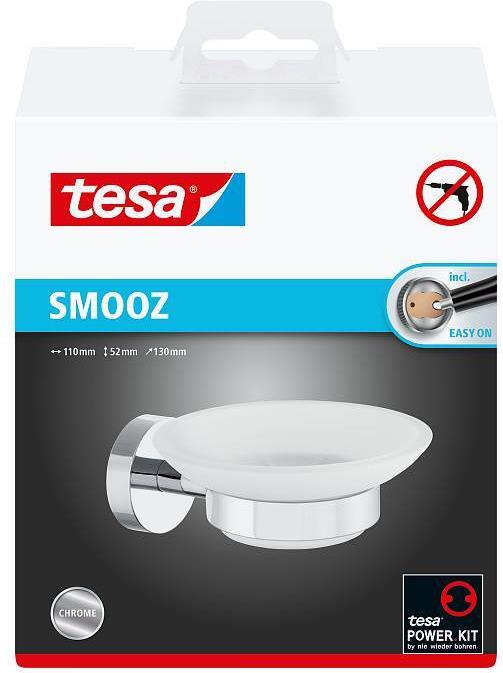 Der hochwertige tesa® Smooz Seifenhalter überzeugt durch eine gelungene Kombination aus hoher Funktionalität und elegantem Design. Er wird dank patentierter Klebetechnologie ohne Bohren befestigt. Da Sie ihn jederzeit ...