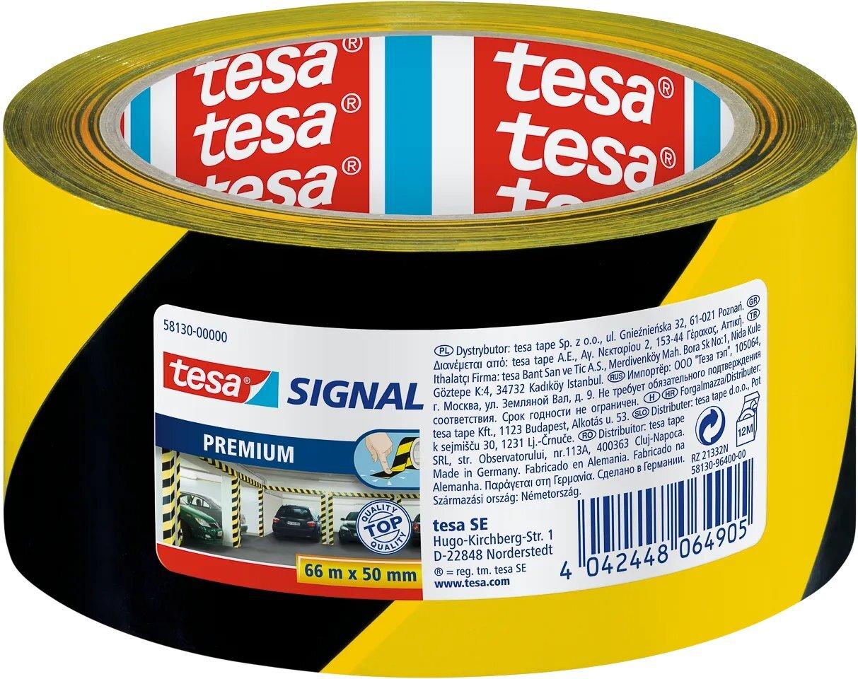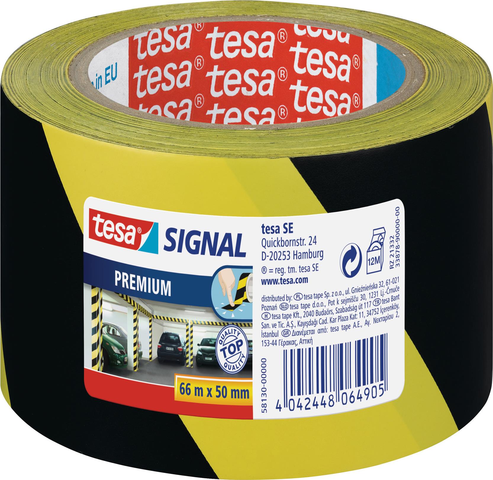 tesa Signal Markierungs- und Warnklebeband Premium, gelb- schwarz, 50 mm x 66 m, aus PVC, zum Kennzeichnen (58130-00000-00)