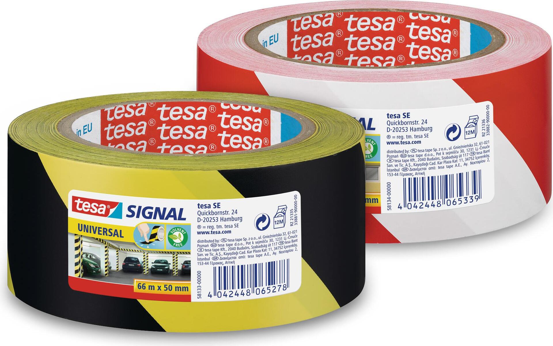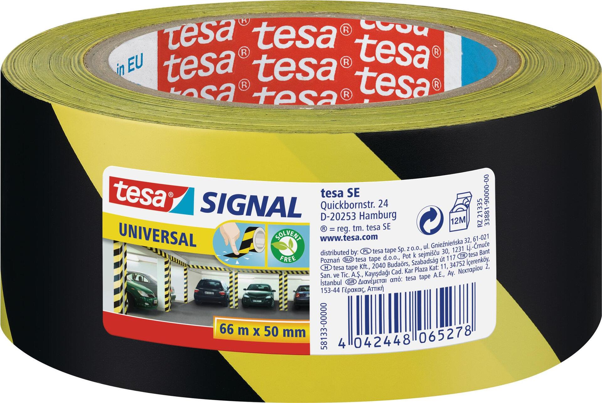 tesa Signal Markierungs- und Warnklebeband Universal, gelb- schwarz, 55 mm x 66 m, aus PVC, zum Kennzeichnen (58133-00000-00)
