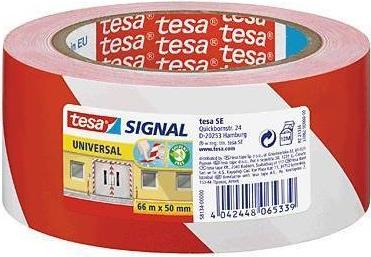 Das selbstklebende tesa® Signal Universal Markierband entspricht in seiner Farbgebung den Empfehlungen der EU und sorgt mit den Farbkombinationen schwarz/gelb oder rot/weiß für die gewünschte Signalwirkung. Mit einer Breite von 5 cm kann das Markierband überall dort eingesetzt werden, wo es um eine besondere Sicherheit geht, z.B. auf einer Baustelle.