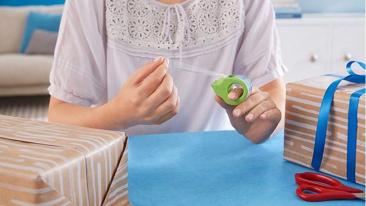 Der tesafilm Mini Abroller ecoLogo bietet eine einfache und praktische Lösung zum Abrollen und Schneiden von tesafilm. Er kann auf den Finger aufgesteckt werden und ermöglicht dadurch eine freihändige Anwendung.
