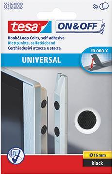 tesa Klettpunkte, Durchmesser: 16 mm, schwarz selbstklebend, zum fixieren von Kugelschreiber, leichten (55226-00000-01)