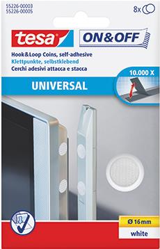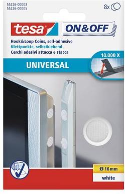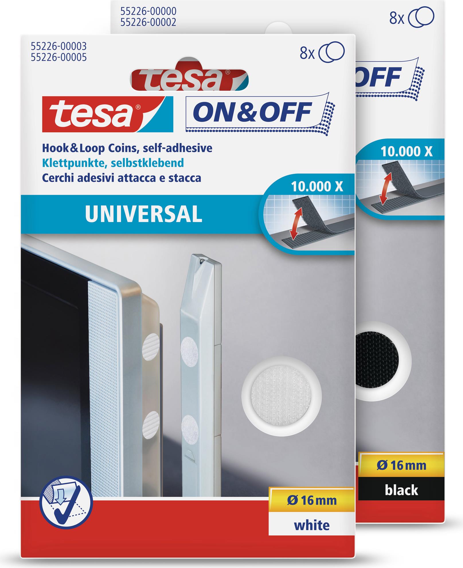 Die vielseitige Art zum Organisieren und Fixieren von leichten Gegenständen und Textilien. Für Kleidung, Heimtextilien und zum Dekorieren einsetzbar. tesa On & Off Allzweck-Produkte lassen sich 10.000 x öffnen und schließen.