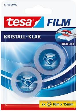 tesafilm® kristall-klar KlebebandKristall-klar, höchste TransparenzStark klebendGeräuschloses AbrollenDer hochwertige tesafilm kristall-klar mit herausragender Transparenz eignet sich ideal zum unsichtbaren Zukleben, Befestigen, Reparieren, Fixieren und Verpacken. Kristall-klar, höchste Transparenz. Unsichtbar auf fast allen Untergründen. Stark klebend. Handeinreißbar, kein Ausreißen.Geräuschloses Abrollen. Alterungsbeständig. PP-Folie und lösungsmittelfreie Klebmasse. Für alle tesafilm Abroller geeignet.Technische Daten: Farbe: TransparentInhalt: 2 Rolle(n)Klebeband-Besonderheiten: Hohe Reißfestigkeit, Alterungsbeständig, Lösungsmittelfrei, TransparentKlebeband-Typ (Kategorisierung): TesafilmProduktabmessung, Breite: 15 mmProduktabmessung, Länge: 10 mSerie (Klebebänder): Tesafilm®Trägermaterial: PolypropylenfolieTyp (Hersteller-Typ): 57766Lieferumfang: 2 Rollen