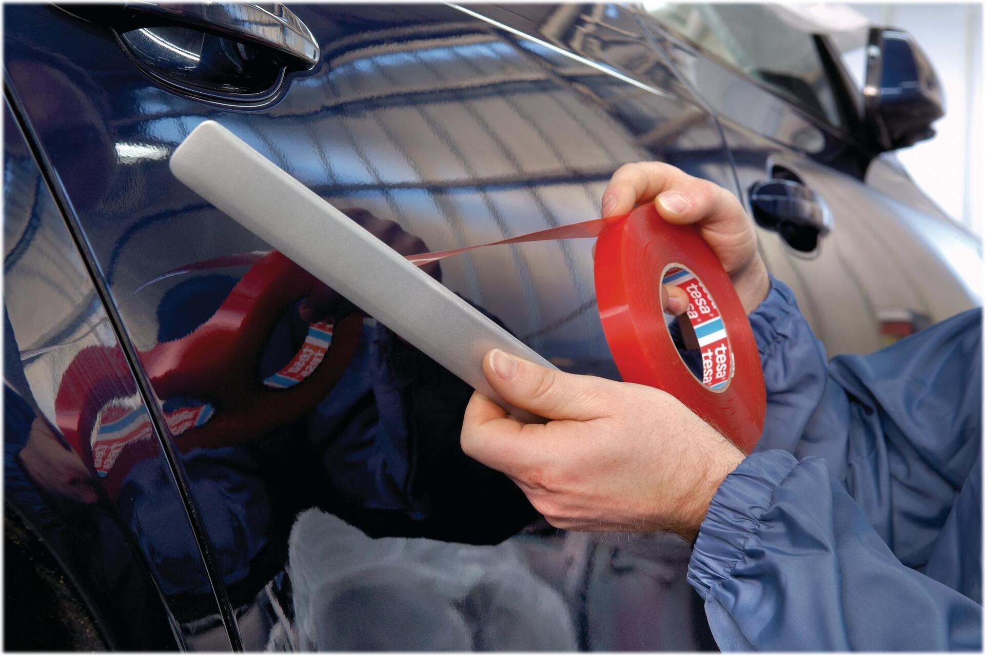 tesafix 4965 ist ein doppelseitig klebendes, transparentes Polyesterklebeband mit Acrylatklebmasse. Es ist mit einer roten Folie abgedeckt. tesafix 4965 zeichnet sich durch gute Klebkraft auf verschiedenen Kunststoffen wie ABS und sogar EPDM aus, da es sehr beständig gegen Weichmacher ist. tesafix 4965 ist UL-gelistet unter MH/18055.