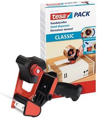 Der tesa Handabroller für sicheres und sauberes Verschließen von Packstücken aller Art. Einsetzbar für Rollenbreiten bis zu 50 mm.