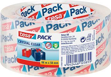 tesapack Verpackungsklebeband crystal clear ultra strong aus PP, 50 mm x 66 m, extrem reißfest, starke Klebekraft (57807-00000-01)
