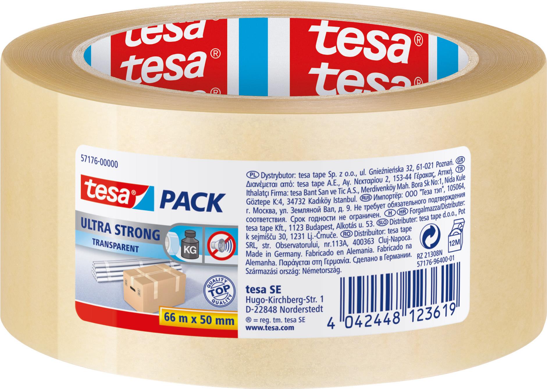 Tesa Klebeband Ultra Strong PVC 50mm/66 Meter (57176 Transparent) (57176 (Transparent))