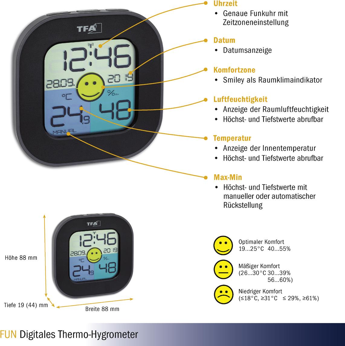 TFA-Dostmann FUN Indoor Elektronisches Hygrometer Schwarz (30.3242.02)