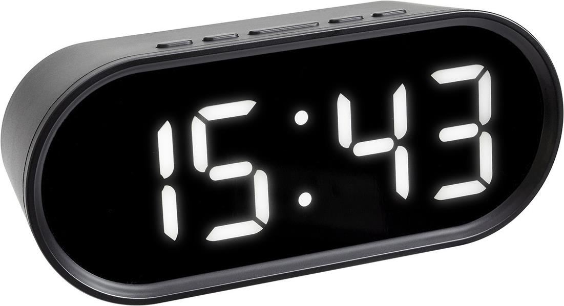 TFA-Dostmann Digitaler Wecker mit LED-Leuchtziffern - Digitaler Wecker - Oval - Schwarz - Kunststoff - 0 - 50 °C - F,°C (60.2025.01)