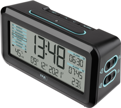 • TFA Dostmann 60.2562.01.GB Funk Wecker Schwarz, Hellblau Alarmzeiten 2 (60.2562.01.GB)