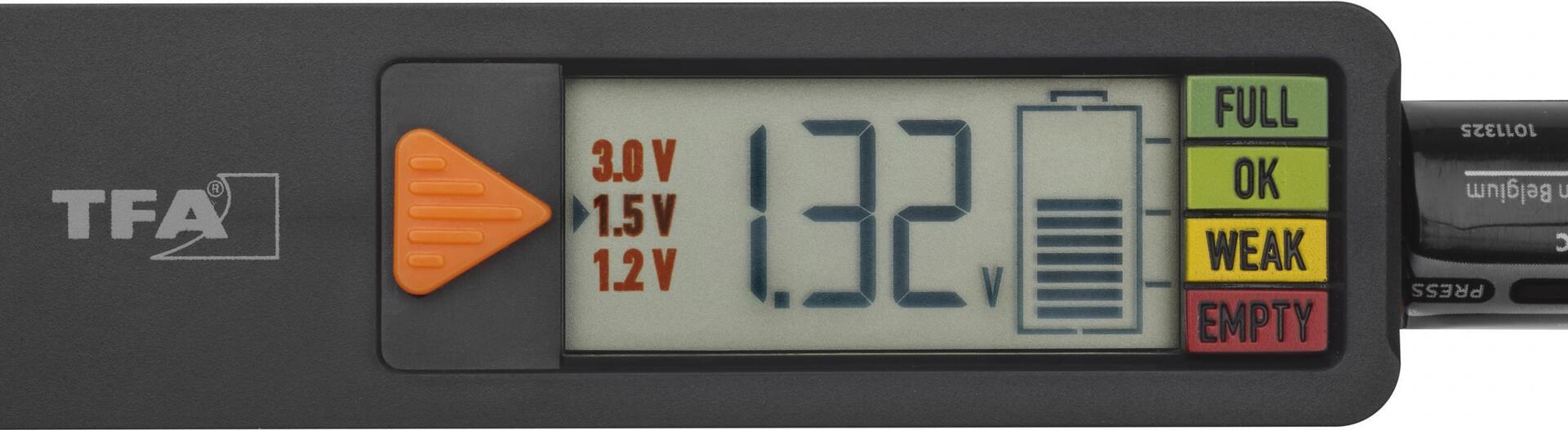 TFA Dostmann Batterietester Batterietester BatteryCheck Messbereich (Batterietester) 1,2 V, 1,5 V, 3 V, 9 V Akku, Batterie 98.1126.01 (98.1126.01)