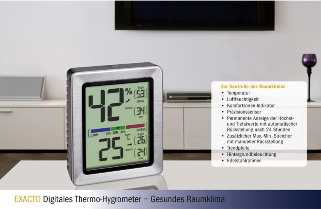 TFA-Dostmann EXACTO Indoor Elektronisches Hygrometer Silber (30.5047.54)