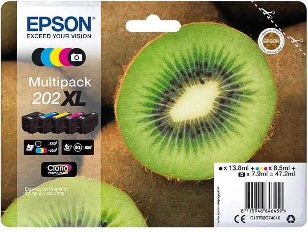 | Produktbeschreibung | Epson Multipack 202XL - 5er-Pack - High Capacity - Schwarz, Gelb, Cyan, Magenta, Photo schwarz - Original - Tintenpatrone |