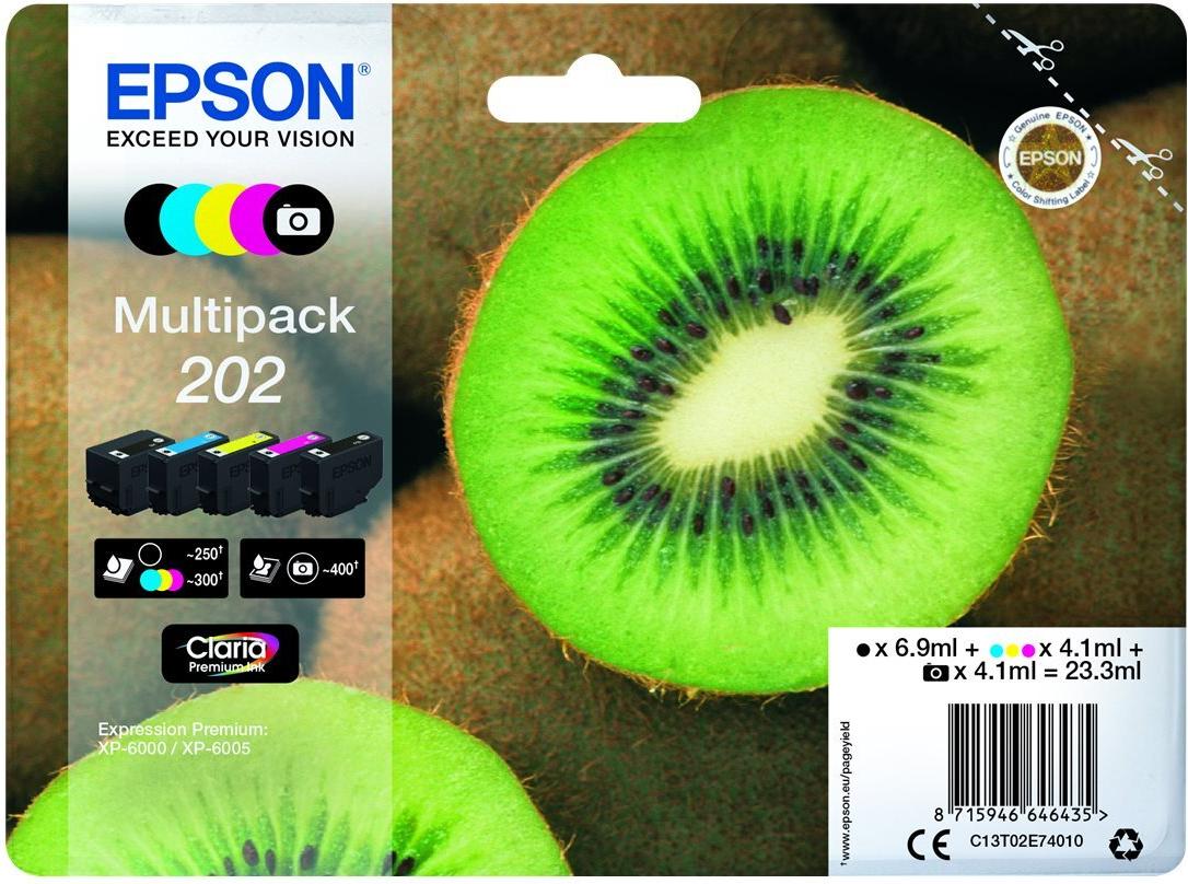 | Produktbeschreibung | Epson Multipack 202 - 5er-Pack - Schwarz, Gelb, Cyan, Magenta, Photo schwarz - Original - Tintenpatrone |