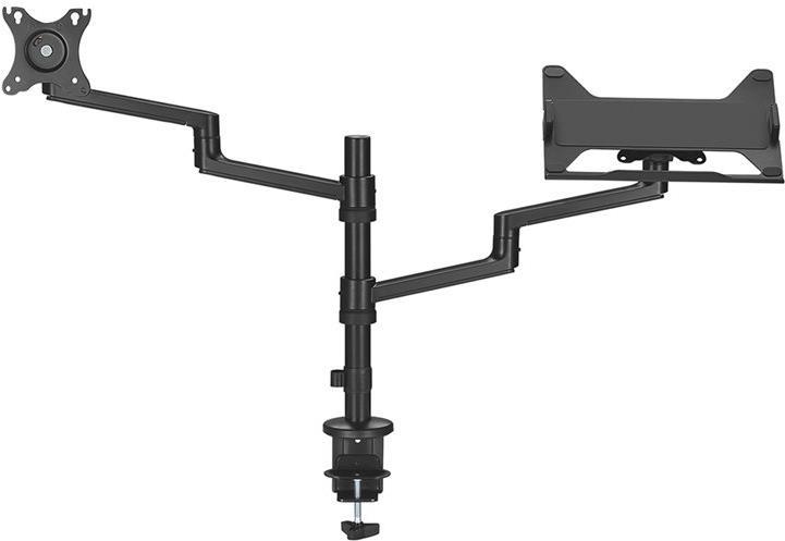 Die Neomounts DS20-425BL2 ist eine vollbewegliche Tischhalterung. Die vielseitige Neigungs- (120°), Dreh- (360°) und Schwenkfunktion (180°) ermöglicht es Ihnen, die Halterung auf die optimale Höhe und den optimalen Blickwinkel für Ihren Bildschirm und Laptop einzustellen. Zusätzlich verfügt die Halterung über eine manuelle Höhen- und Tiefenverstellung, um die perfekte Arbeitsposition zu schaffen.