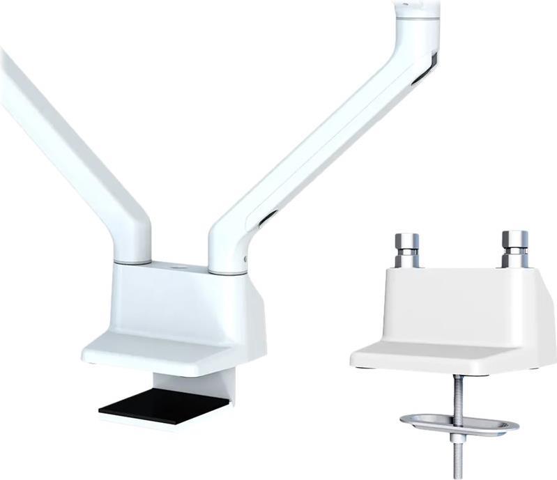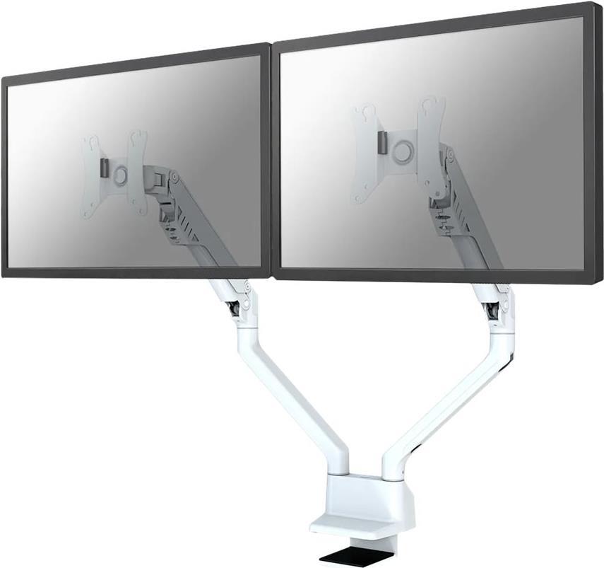 Die Neomounts Tischhalterung, Modell FPMA-D750DWHITE2 ist eine neig-, schwenk- und drehbare Tischhalterung für Flachbildschirme bis zu 32". Diese Halterung ist eine großartige Wahl für die platzsparende Platzierung auf Schreibtischen mit einer Topfix-Schreibtischklemme oder einer Tülle.