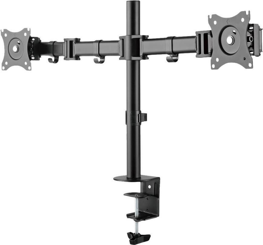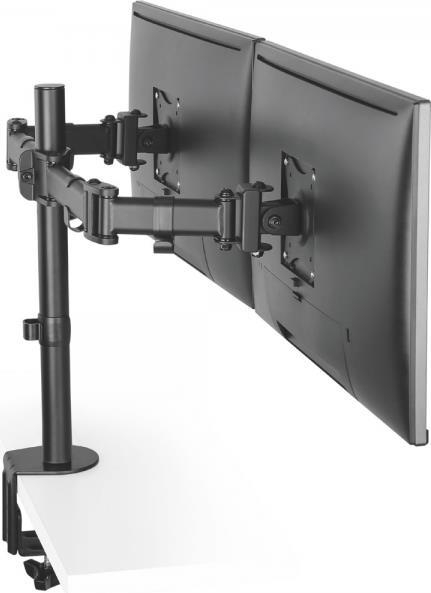 • Monitor Tischhalterung für 2 Monitore• Für 13\"-27\" (33-68cm) TFT/LCD/LED Flachbild-Monitore geeignet• VESA 75x75, 100x100mm• Um +/- 30° neigbar• Monitore 360° drehbar• Mit 2 Gelenkarmen für eine flexible Ausrichtung der Monitore• Inkl. Schrauben zur Befestigung der Monitore• Schraubklemme zur Befestigung an der Tischplatte oder durch die Tischplatte• Geeignet für Tischplatten 10-88mm Stärke• Höhe einstellbar• Inkl. Kabelmanagement• Bis 8kg pro Arm belastbarHauptmerkmale
