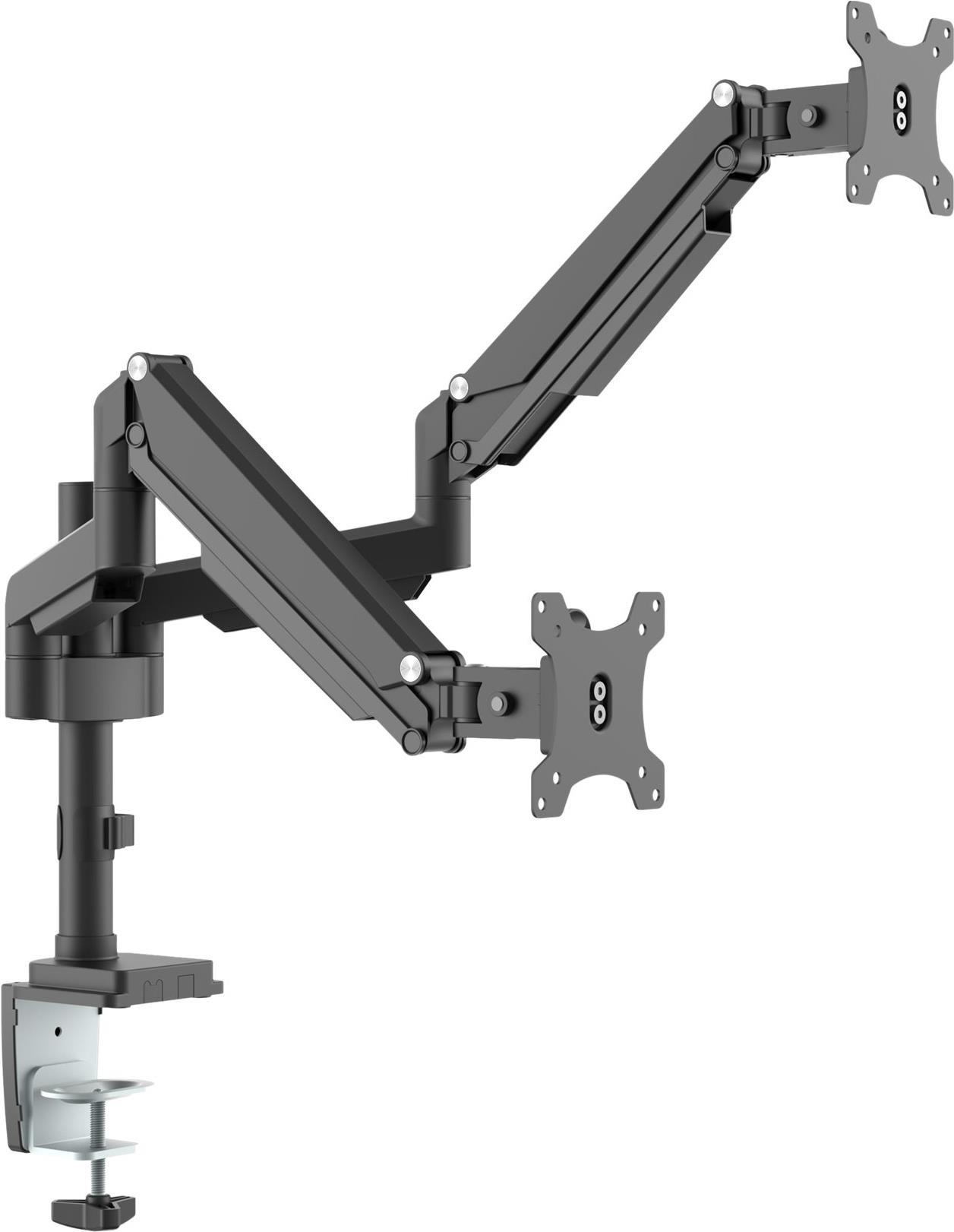 Die InLine® Tischhalterung mit Lifter ist die ideale Lösung für professionelle Arbeitsplätze, Systemintegratoren und Wiederverkäufer, die eine flexible und ergonomische Bildschirmpositionierung benötigen. Mit der hochwertigen Gasfeder-Technologie ermöglicht der Monitorarm eine stufenlose Anpassung, sodass Monitore individuell ausgerichtet werden können. Die robuste Aluminiumkonstruktion mit einer zusätzlichen Stange sorgt für Stabilität und eine erhöhte Positionierung von bis zu 30 cm.Dank der abnehmbaren VESA-Platte gestaltet sich die Installation besonders einfach. Die integrierte Kabelführung sorgt für einen aufgeräumten Schreibtisch, während der flexible Schwenkarm eine angenehme Bedienung gewährleistet. Geeignet für Monitore von 17 bis 32 Zoll und mit einem maximalen Gewicht von 9 kg pro Bildschirm, bietet diese Halterung vielfältige Einsatzmöglichkeiten in modernen Büroumgebungen.Technische Spezifikationen:• Bildschirmgröße: 17"-32"