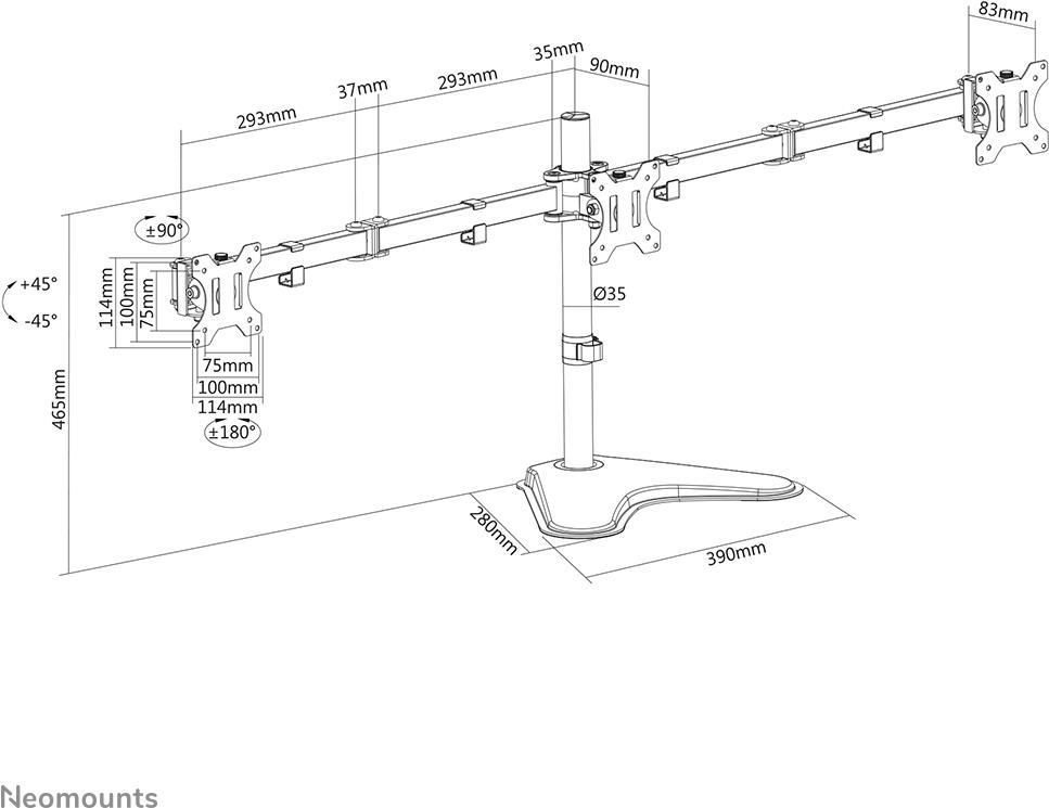 Neomounts FPMA-D550DD3 - Aufstellung - für 3 Monitore (full-motion) - Schwarz - Bildschirmgröße: 33-68.6 cm (13"-27") - Schreibtisch