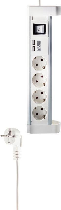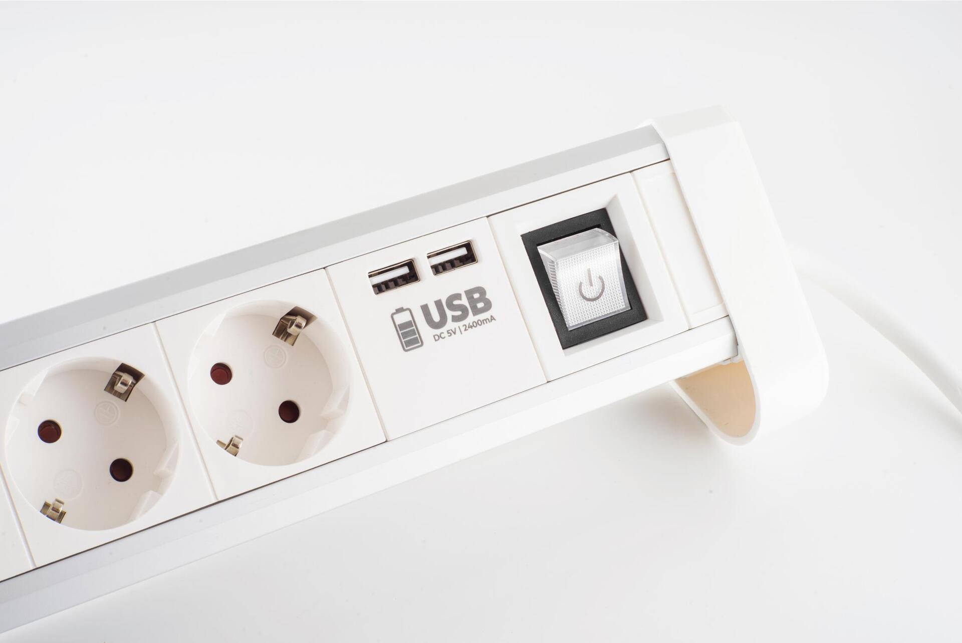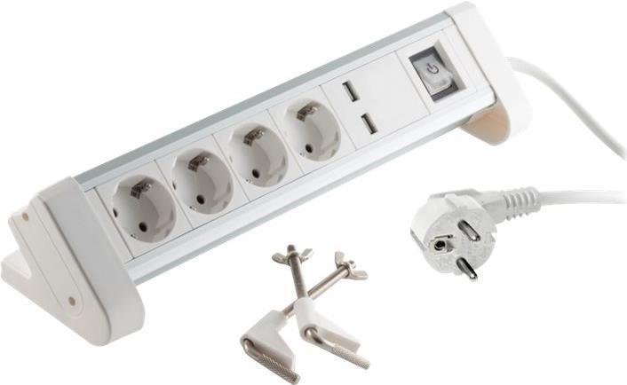 Tischsteckdosenleiste 4-fach mit USB Ladefunktion, weiß · 4-fach Tischsteckdosenleiste aus Aluminium mit USB Ladefunktion 2x 1000mA· Inklusive Befestigungsmaterial· Steckdosen angeordnet im 45?°-Winkel - so finden ...