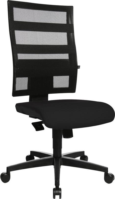 Topstar Bürodrehstuhl \"X-Pander\", schwarz / schwarz Rückenlehne Netzstoff: schwarz, Sitzbezug Trevira: schwarz, ergonomische Rückenlehne mit hinterspannten, elastischen Gummibändern, Punktsynchron-Mechanik, Fußkreuz in schwarz Sitzmaße: (B)480 x (T)480 x (H)440 - 560 mm, Tragkraft: 110 kg (9500 T200)