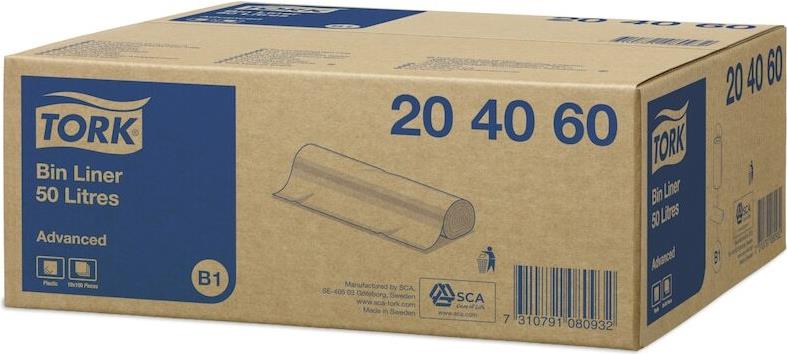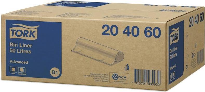 TORK Abfallsack, transparent, 50 Liter aus umweltfreundlichem Polyethylen, für TORK Abfallbehälter - 1 Stück (204060)
