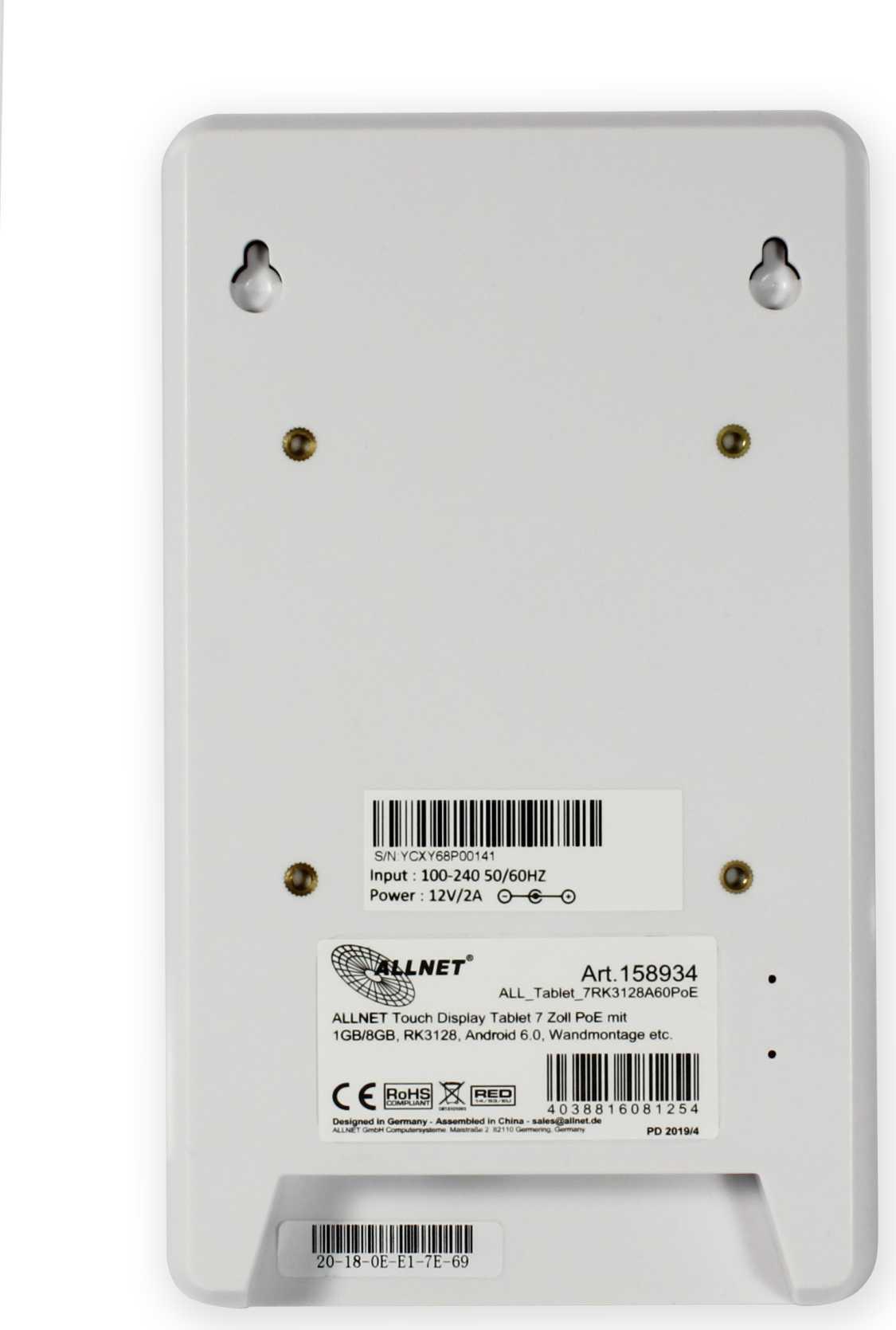 ALLNET Touch Display Tablet 17,80cm (7") PoE mit 2GB/16GB, RK3288, Android 9.0 (ALLTAB7RK3288A10PoE)
