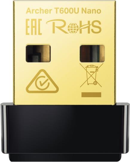 Der Archer T600U Nano empfängt WLAN-Signale auf zwei separaten Bändern. Dank der 256QAM-Technologie wird die Datenrate auf 2,4 GHz von 150 Mbit/s zu 200 Mbit/s erhöht, damit wird die Leistung um 33% gesteigert. Mit 433 Mbit/s auf 5 GHz eignet sich der Archer T600U Nano als ideal für bandbreitenintensive Anwendungen wie HD-Videostreaming oder Online-Gaming, während die WLAN-Geschwindigkeit 200 Mbit/s auf 2,4 GHz den normalen Gebrauch abdeckt.Produkttext[/head]High-Speed Dualband-WLAN-Adapterfür eine schnellere VerbindungDer Archer T600U Nano empfängt WLAN-Signale auf zwei separaten Bändern. Dank der 256QAM-Technologie wird die Datenrate auf 2,4 GHz von 150 Mbit / s zu 200 Mbit / s erhöht, damit wird die Leistung um 33% gesteigert. Mit 433 Mbit/s auf 5 GHz eignet sich der Archer T600U Nano als ideal für bandbreitenintensive Anwendungen wie HD-Videostreaming oder Online-Gaming, während die WLAN-Geschwindigkeit 200 Mbit / s auf 2,4 GHz den normalen Gebrauch abdeckt.Miniaturdesign im Nano-FormatDer USB-Adapter Archer T600U Nano passt in jeden USB-Port und ist daher ideal für Reisende, Studenten und Abenteurer, also einfach für jedermann, der in Bewegung ist.Kompaktes Design und WLAN-Roaming – Best Auswahl für mobiles SurfenDas öffentliche WLAN macht es Ihnen schwer ein stabiles Netzwerk zu finden, welches bei Bewegung unterschiedliche Empfangsstärken zeigt.Dank dem WLAN-Roaming ist der Archer T600U Nano in der Lage, automatisch das geeignetste unterbrechungsfreie Netzwerk zu finden. Mit seinem kompakten Design ist der Archer T600U zweifellos die beste Auswahl für mobiles Surfen.Schnelle WLAN-Geschwindigkeit– Bis zu 200Mbit/s auf 2,4Ghz und 433Mbit/s auf 5GHzDualband-WLAN – 2,4GHz und 5GHz-Band für flexible Verbindung, verbesserte Zusammenarbeit mit dem Dualband-WLAN-Router für schnellere Geschwindigkeit und größere ReichweiteNano-Design – Mini-Format, Ideal für den Einsatz unterwegsBetriebssystem – Unterstützt Windows 10/8.1/8/7/XP, Mac OS XErweitere Sicherheit –Unterstützt 64/128-bit WEP, WPA/WPA2, WPA-PSK/WPA2-PSK 21/5000 VerschlüsselungsstandardsSchnelle WLAN-Geschwindigkeit– Bis zu 200Mbit/s auf 2,4Ghz und 433Mbit/s auf 5GHzNano-Design – Mini-Format, Ideal für den Einsatz unterwegsBetriebssystem – Unterstützt Windows 10/8.1/8/7/XP, Mac OS X[head]Hauptmerkmale