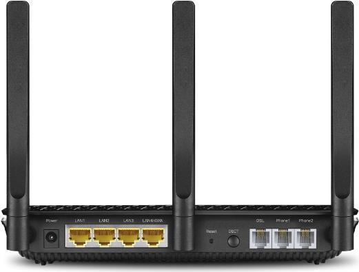 AC, LAN (RJ-45), Telefon (RJ-11) |
