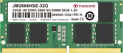 Transcend JetRAM - DDR4 - Modul - 32 GB - SO DIMM 260-PIN - 2666 MHz / PC4-21300 - CL19 - 1.2 V - ungepuffert - non-ECC (JM2666HSE-32G)