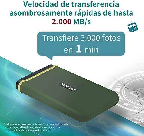 Der ESD380C von Transcend ist ein tragbares Solid-State-Gerät mit einem stoßfesten Silikongehäuse in militärischem Grün. Seine USB 3.2 Gen 2x2-Schnittstelle bietet unvergleichliche Übertragungsgeschwindigkeiten. Mit seiner hohen Kapazität und Kompatibilität ist der ESD380C die perfekte Wahl, um Ihre Daten sicher aufzubewahren.Produkttext[/head]Externe SSD ESD380CDie ESD380C von Transcend ist eine portable SSD mit robustem Silikon-Gummigehäuse in militärgrüner Farbe. Die USB 3.2 Gen 2x2-Schnittstelle bietet unübertroffene Übertragungsraten. Mit ihrer hohen Kapazität und Kompatibilität ist die ESD380C zweifelsohne die perfekte Wahl für sichere und mobile Datenspeicherung.Rasend schnelle ÜbertragungsgeschwindigkeitenDie ESD380C ist mit einer USB 3.2 Gen 2x2-Schnittstelle ausgestattet und unterstützt UASP (USB Attached SCSI Protocol). Damit bietet sie atemberaubend schnelle Übertragungsgeschwindigkeiten von bis zu 2.000 MB/s und sticht mit ihrer Leistung unübertroffen aus der Menge empor.Elegantes Anti-Shock-DesignDie ESD380C von Transcend wird in einem militärgrünen Silikon-Gummigehäuse geliefert, das widerstandsfähig und stoßdämpfend ist. Dank des Stoßschutzsystems, das die US-Militärstandards für Falltests erfüllt, können Sie sicher sein, dass die auf dem Laufwerk gespeicherten Daten vollständig geschützt sind. Die super-kompakte ESD380C in Handtellergröße ist besonders klein und passt damit perfekt in Ihre Hosentasche.Speicher im Handumdrehen erweiternDie ESD380C ist mit Kapazitäten von bis zu 2 TB erhältlich und bietet Ihnen somit ausreichend Platz für Backups und die Speicherung hochauflösenden Bilder, 4K-Videos und anderer Mediendateien!Unterstützt zahlreiche GeräteNeben Desktop PCs und Laptops unterstützt die ESD380C auch mobile Geräte und Spielkonsolen für unterwegs und bietet ultraschnelle Übertragungsgeschwindigkeiten und eine extragroße Kapazitätserweiterung für fast alle denkbaren Anforderungen.Hinweis:1. Mobile Geräte müssen USB OTG unterstützen. Die Hersteller von Spielkonsolen können Kapazitätsanforderungen für externe Speicher festlegen. Bitte prüfen Sie die Kompatibilität vor dem Kauf.2. Die ESD380C ist mit dem exFAT-Dateisystem formatiert. Bestimmte mobile Geräte erfordern FAT32. Falls zutreffend, formatieren Sie die ESD380C vor der Verwendung auf FAT32 um.Typ-A- und Typ-C-Kabel im Lieferumfang enthaltenDie ESD380C wird sowohl mit einem USB-Typ-C-Kabel als auch mit einem USB-Typ-C-auf-Typ-A-Kabel geliefert, um Desktop PCs und Laptops mit USB-Typ-C- oder Typ-A-Anschluss zu unterstützen.Durch und durch coolDie ESD380C von Transcend ist zur optimalen Wärmeableitung und zum Schutz bei Erschütterung in einer Aluminiumlegierung eingebettet und bleibt somit kühl - trotz enormer Leistung. Der integrierte Dynamic Thermal Throttling-Mechanismus und das erweiterte Wärmemanagement sorgen dafür, dass die ESD380C eine hervorragende Ausdauer und Stabilität bietet.Extremer Schutz & fortschrittliche SicherheitDie Speichergeräte von Transcend bieten eine exklusive Sicherheitsfunktion. Mit der Transcend Elite-Software können Sie Ihr gesamtes Laufwerk und die darauf befindlichen Dateien mit Passwörtern schützen und so den hohen Anforderungen an die Informationssicherheit gerecht werden.Datenmanagement mit Transcend Elite Transcend Elite ist ein fortschrittliches Datenmanagement-Softwarepaket, das mit macOS, Windows OS und Android kompatibel ist. Es ist sowohl als Desktop- als auch als mobile App verfügbar und kann kostenlos von der offiziellen Website von Transcend und von Google Play heruntergeladen werden. Transcend Elite bietet Funktionen für die Sicherung, Wiederherstellung, Datenverschlüsselung und Cloud-Backup.[head]Hauptmerkmale