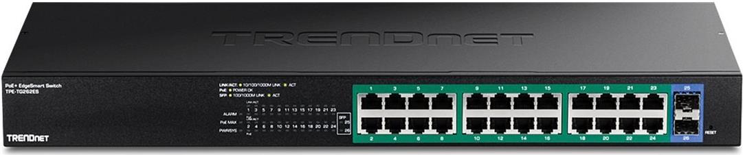 Der TRENDnet TPE-TG262ES ist ein vielseitiger Gigabit-Switch, der für effiziente Netzwerklösungen entwickelt wurde. Mit einer Switching-Kapazität von 52 Gbps und einer Weiterleitungsrate von 38,69 Mpps erfüllt dieser Switch die Anforderungen moderner Netzwerke effektiv. Ausgestattet mit 24 Gigabit-Ethernet-Ports und 2 Gigabit-SFP-Ports unterstützt er PoE+ für die Stromversorgung von Geräten wie IP-Kameras und Wireless Access Points, wodurch die Installation vereinfacht und Unordnung reduziert wird. Mit einem Metallgehäuse und intelligenter Lüftertechnologie ausgestattet, arbeitet er effizient in einem Temperaturbereich von 0 °C bis 40 °C und hält einer Luftfeuchtigkeit von bis zu 90 % ohne Kondensation stand, wodurch Zuverlässigkeit in verschiedenen Umgebungen gewährleistet wird. Die Verwaltung ist dank der Unterstützung von SNMP und einem benutzerfreundlichen Web-GUI-Verwaltungsportal bequem. Der TRENDnet TPE-TG262ES verfügt außerdem über Funktionen wie IGMP-Snooping für effizienten Multicast-Verkehr, Port-Spiegelung zur Überwachung und statische Link-Aggregation zur Optimierung der Bandbreitennutzung. Durch die Einhaltung von Branchenstandards wie IEEE und TAA ist dieser Switch die ideale Wahl für Unternehmen, die eine zuverlässige Netzwerklösung suchen, die ihren Wachstumsanforderungen gerecht wird.