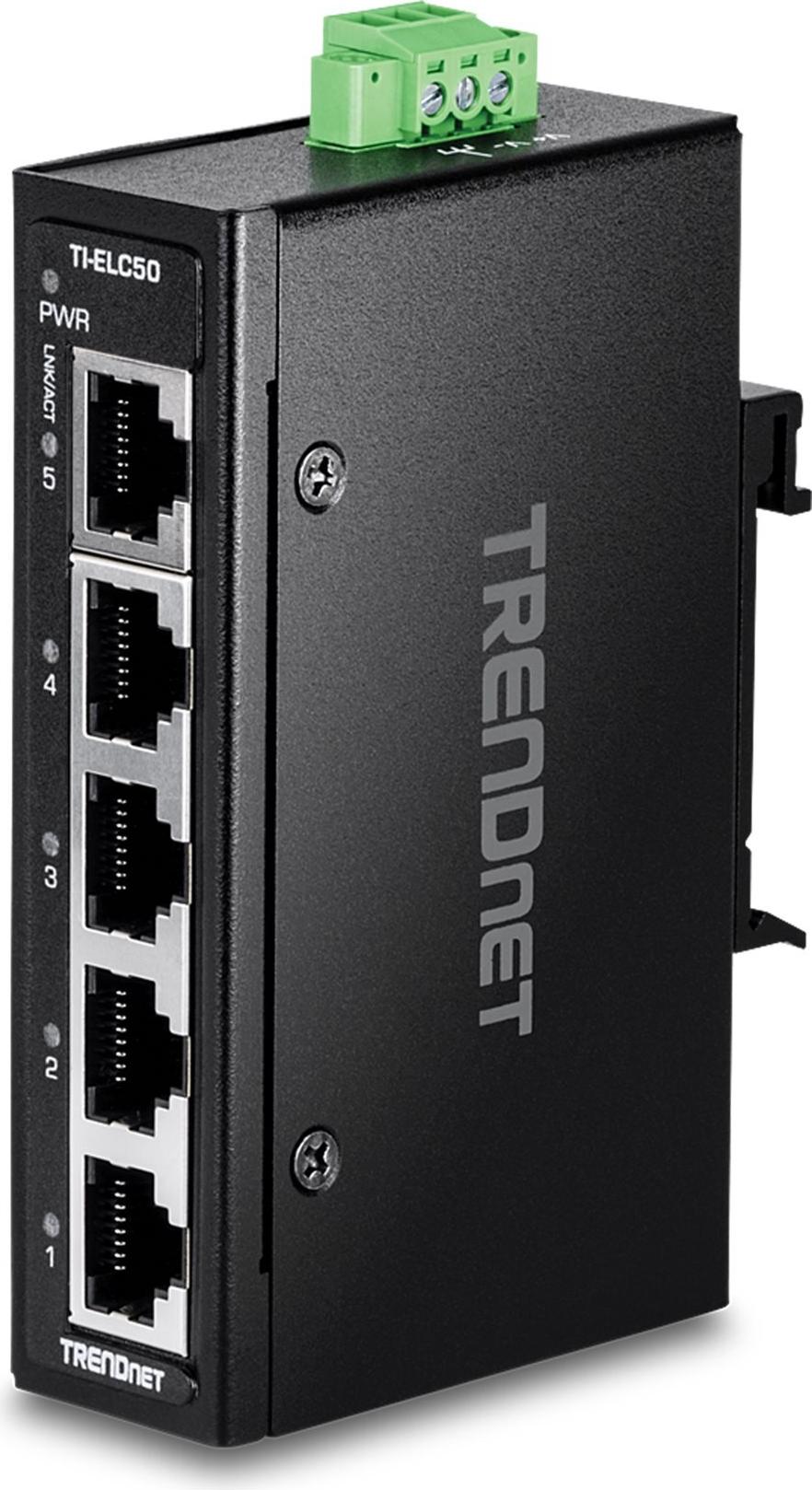 Der TRENDnet TI-ELC50 wurde für industrielle Anwendungen entwickelt und vereint Langlebigkeit und effektive Leistung in einem kompakten Formfaktor. Mit einer Kapazität von 56 KB RAM-Puffer arbeitet er zuverlässig bei extremen Temperaturen von -40 °C bis 75 °C und kann Feuchtigkeitswerte von bis zu 95 % ohne Kondensation bewältigen. Dieser Switch verfügt über fünf 10/100Base-TX-Ports mit Auto-Negotiation-Funktionen, die eine effiziente Datenübertragung unter verschiedenen Netzwerkbedingungen gewährleisten. Durch seine Mini-Größe eignet er sich für die Wand- oder DIN-Schienenmontage und ermöglicht eine flexible Installation auf engstem Raum.