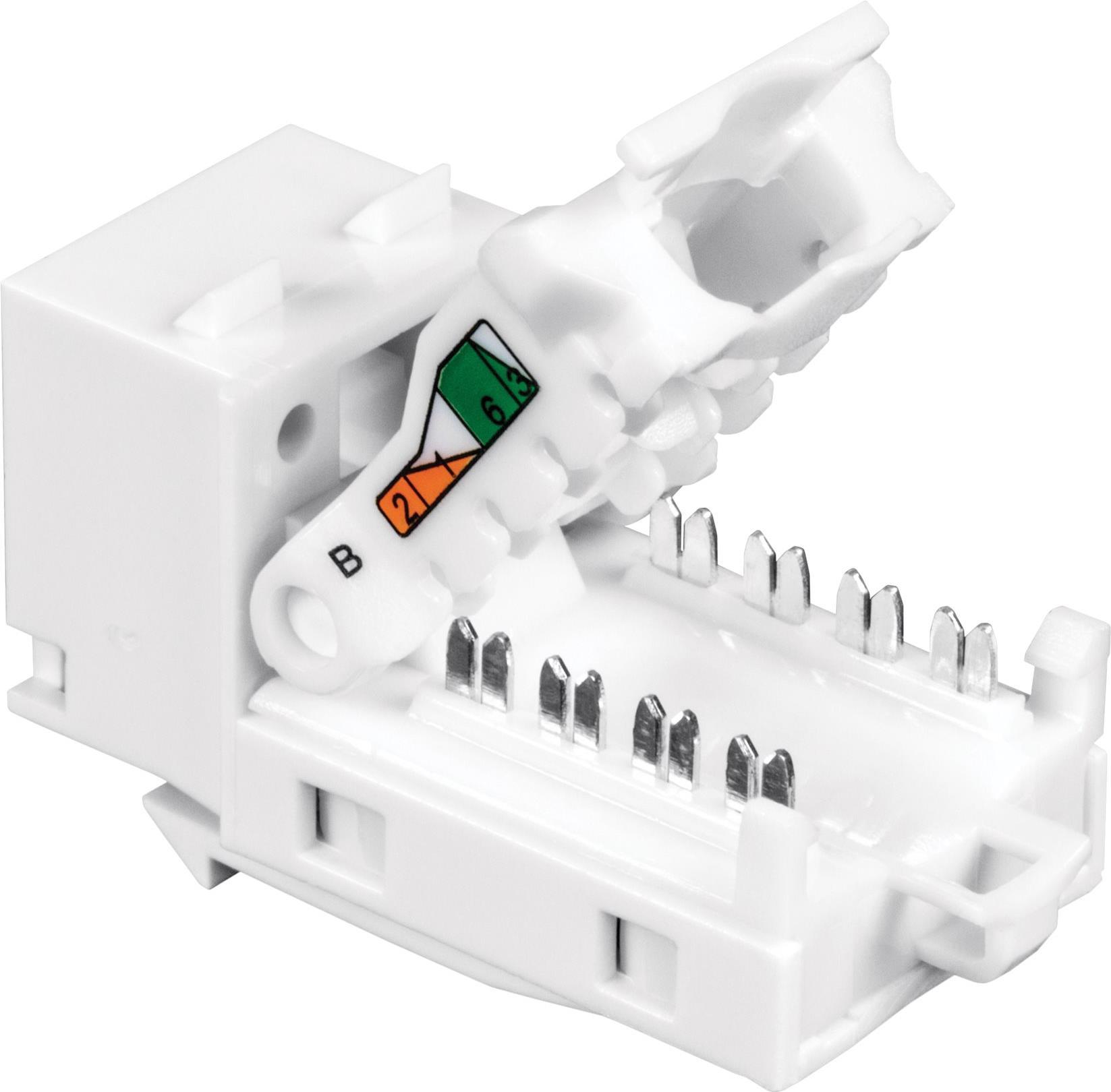 Der Cat6 Keystone-Buchsen 50-er Pack von TRENDnet, Modell TC-K50C6, enthält fünfzig Cat6 Keystone-Buchsen zur Verwendung mit dem leeren Keystone Patch Panel TC-KP24 von TRENDnet. Jede Keystone-Buchse bietet bis zu 10 Gbit/s Geschwindigkeiten über 55 m (180 Fuß) Cat6 Ethernet-Verkabelung. Diese Cat6 Keystone-Buchsen zeichnen sich durch ein praktisches, werkzeugloses Design mit Drahttrennung für einen einfachen Kabelanschluss aus.