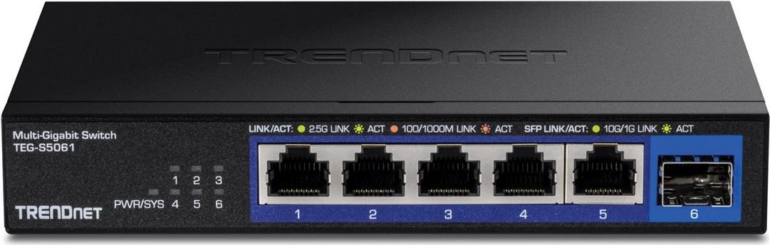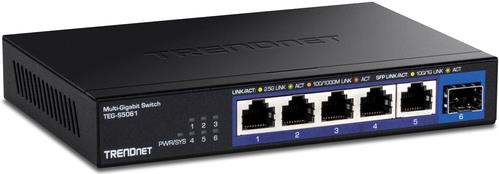 Der TRENDnet TEG-S5061 ist ein vielseitiger 2,5-Gigabit-Ethernet-Switch, der mit seinen Funktionen die Netzwerkleistung verbessert. Mit fünf 1/2,5G-Ports und einem 1/10Gbit-LAN-Anschluss unterstützt dieser Switch verschiedene Netzwerkstandards, darunter IEEE 802.3z und IEEE 802.3ab, und gewährleistet so die Kompatibilität mit einer Vielzahl von Geräten und Anwendungen. Das Gerät arbeitet effizient in Umgebungen mit Temperaturen von 0 °C bis 40 °C und kann Luftfeuchtigkeitswerte zwischen 0 % und 90 % aushalten, wodurch es für verschiedene Umgebungen geeignet ist.