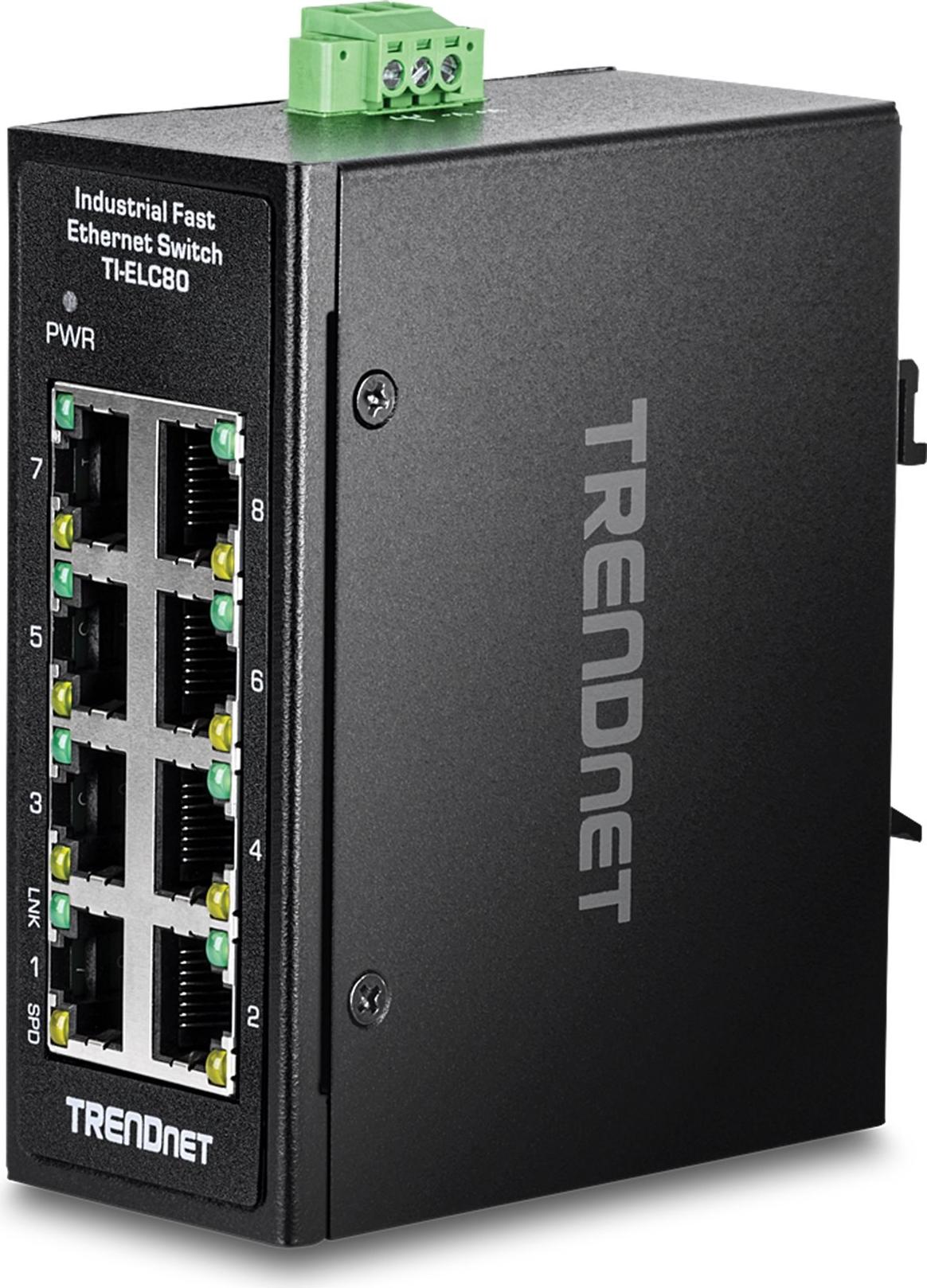 Der TRENDnet TI-ELC80 wurde mit seiner robusten Leistung und langlebigen Konstruktion speziell für die Anforderungen industrieller Netzwerke entwickelt. Mit seinem kompakten Design eignet sich dieser Switch für die Montage auf DIN-Schienen oder an Wänden und passt somit in verschiedene Umgebungen. Mit einem Betriebstemperaturbereich von -40 °C bis 75 °C und einer Feuchtigkeitstoleranz von bis zu 95 % funktioniert er auch unter rauen Bedingungen einwandfrei und bietet zuverlässige Konnektivität für Ihre Geräte.