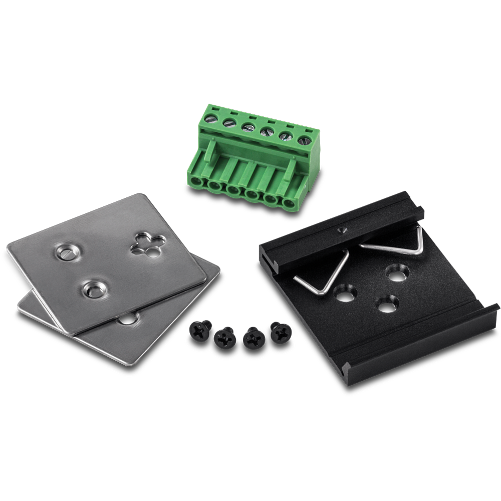 | Zubehör im Lieferumfang | DIN-Schienen-Montageset, Wandmontagekit, abnehmbarer Verteiler |