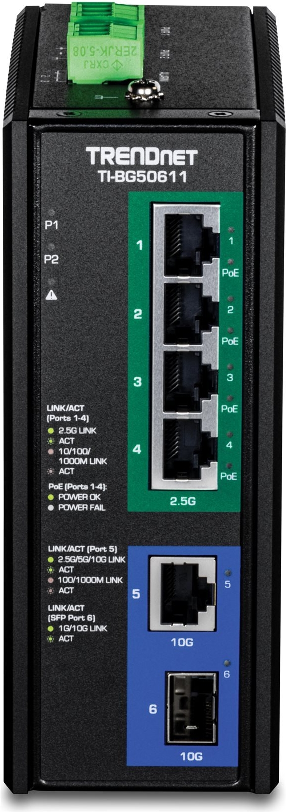 Der TRENDnet TI-BG50611 ist ein robuster Industrieschalter, der für anspruchsvolle Umgebungen entwickelt wurde. Mit einer RAM-Pufferkapazität von 1 MB und einer Weiterleitungsleistung von 60 Gbit/s bewältigt dieser Schalter gekonnt hohen Datenverkehr und bleibt dabei zuverlässig. Er ist für extreme Temperaturschwankungen von -40 °C bis 75 °C und hohe Luftfeuchtigkeit ausgelegt und eignet sich sowohl für Innen- als auch für Außeninstallationen. Ausgestattet mit mehreren Schnittstellenoptionen, darunter 10-Gbit-LAN und PoE++-Funktionen, unterstützt dieser Switch insgesamt 6 Ports und bietet ein PoE-Budget von 240 W, wodurch eine effektive Energieverwaltung für angeschlossene Geräte gewährleistet ist. Das Gerät ist mit einem stoß- und vibrationsfesten Metallgehäuse ausgestattet, das eine lange Lebensdauer im Betrieb gewährleistet und es zu einer geeigneten Wahl für industrielle Anwendungen macht. Der 6-kV-ESD-Schutz bietet zusätzliche Sicherheit und trägt zur Langlebigkeit und Zuverlässigkeit des Switches bei.
