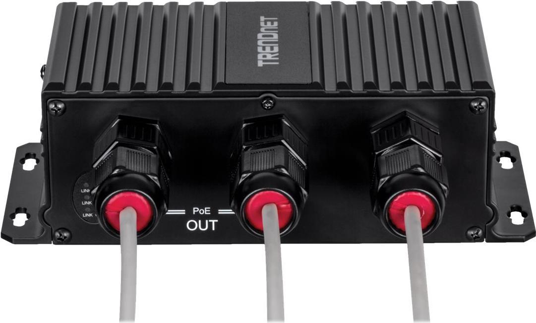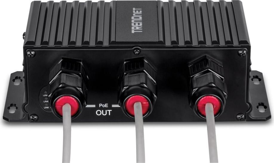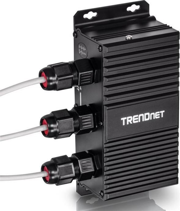 Der TRENDnet 2-Port Industrial Outdoor Gigabit UPoE Extender, Modell TI-EU120, verlängert einen einzigen UpoE-Anschluss um zusätzliche 100 m (328 ft.) für bis zu zwei PoE+-Geräte. Er erkennt automatisch ein PoE (15,4 Watt), ein PoE+ (30 Watt) oder ein UPoE (60 Watt) Signal und verlängert dieses über eine Gesamtdistanz von bis zu 200 m (656 ft.) ab der PoE-Quelle. Daisy Chain mit bis zu 4 Einheiten für eine gesamte PoE-Netzwerkausdehnung von bis zu 500 m (1640 ft.).