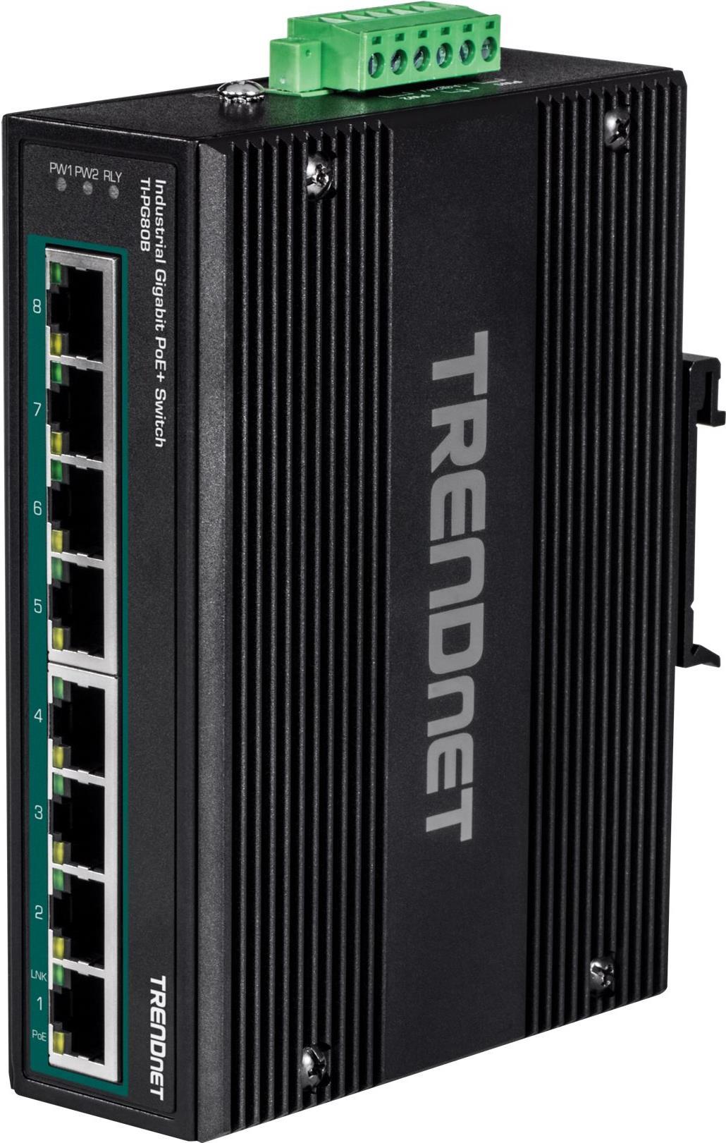 Der 8-Port industrielle Gigabit PoE+ DIN-Rail-Switch von TRENDnet, Modell TI-PG80B, ist ein industrieller variabler Spannungswandler mit acht Gigabit PoE+ Ports und einer PoE-Gesamtleistung von 200W. Benutzer können acht PoE+-Geräte an diesen industriellen PoE+-Switch mit variabler Spannung anschließen, um eine schnelle Verbindung zum Netzwerk herzustellen. Der industrielle PoE+-Switch mit variabler Spannung ist mit einem robusten Metallgehäuse nach IP30 ausgestattet und so konzipiert, dass er einem hohen Grad an Vibration und Schock standhält und gleichzeitig in einem weiten Temperaturbereich von -40° bis 75 °C für industrielle Umgebungen eingesetzt werden kann. Zwei 24-56V DC-Netzeingänge am industriellen Switch mit variabler Spannung sorgen für Redundanz mit Netzausfallalarmrelais.